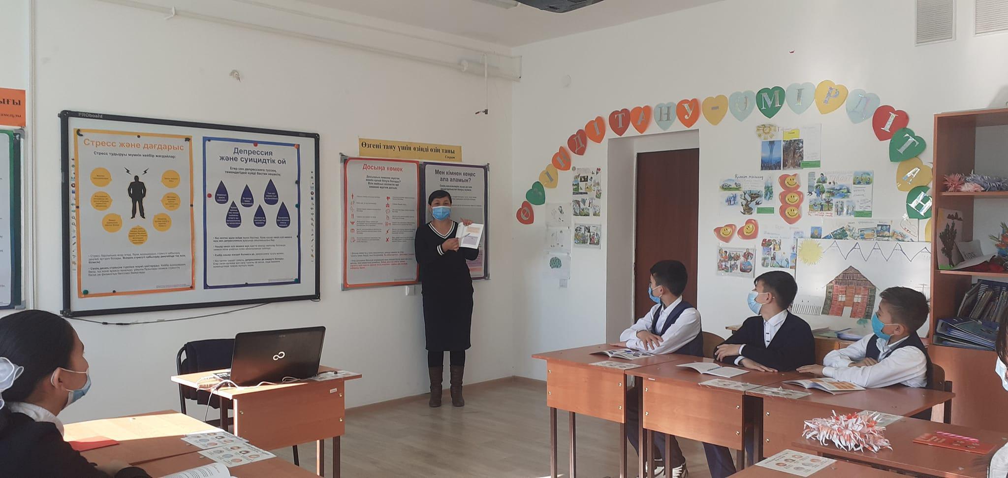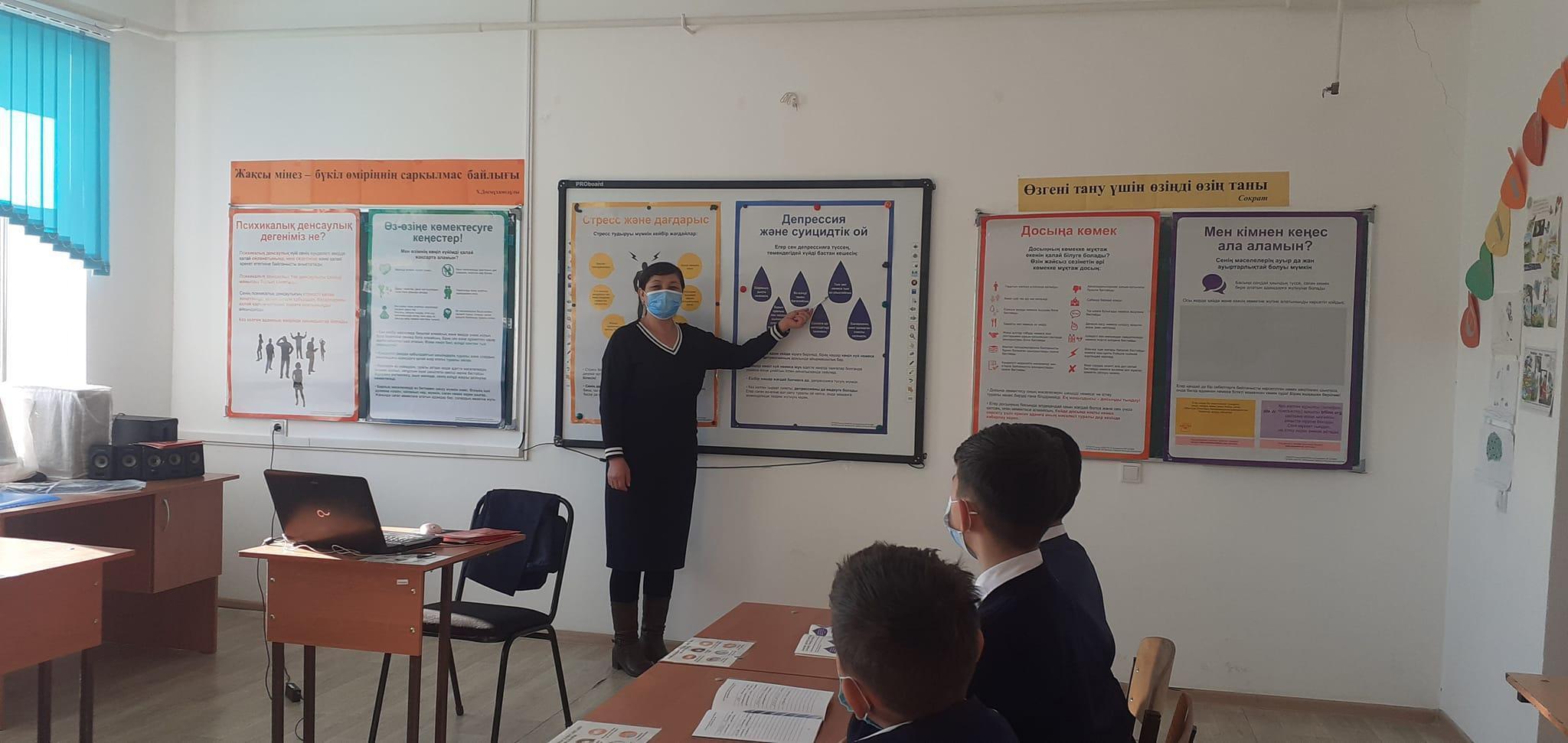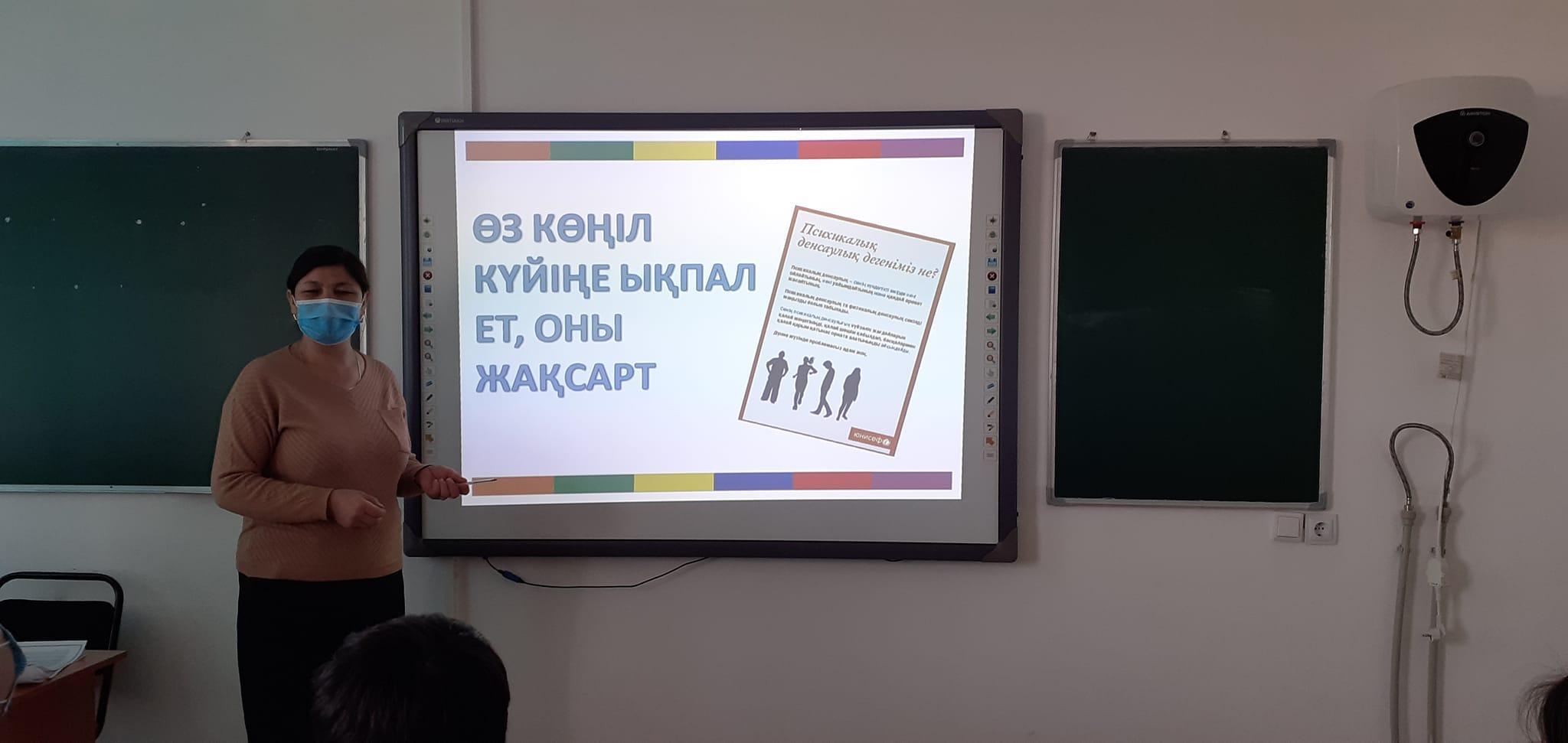 N221негізгі орта мектебінде 7-сынып оқушыларымен педагог-психолог Г.Сейтованың ұйымдастыруымен "Өз көңіл күйіңе ықпал ет және оны жақсарт" тақырыбында дәріс өтті. Оқушылар дәрісте психикалық денсаулықтың физикалық денсаулық сияқты маңыздылығымен танысты, оқушылармен өзара пікірлесу болды.