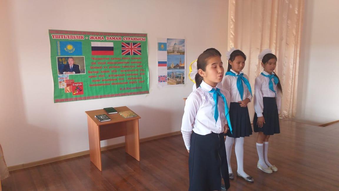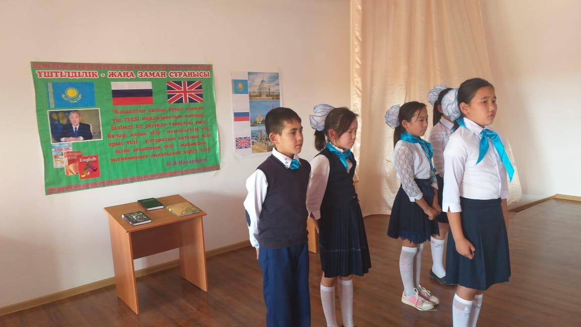 6 қыркүйек күні «Өзге тілдің бәрін біл, өз тіліңді құрметте» атты тілдер онкүндігінде қазақ тілі мен әдебиеті пәні мұғалімі М.Бердіқожаева қазақ тілінен білімдерін байқау, ана тілдің мәртебесін көтеру мақсатында «Тіл білгірі» сайысын ұйымдастырды. Сайысқа 5-6 сыныптар қатысты.