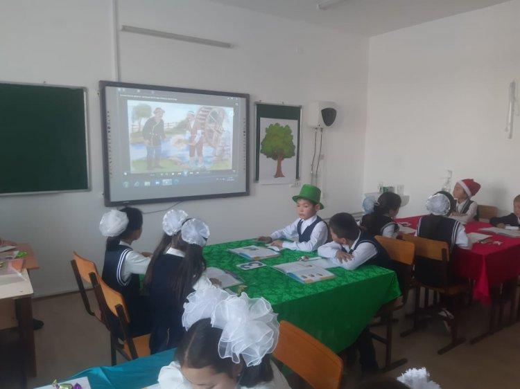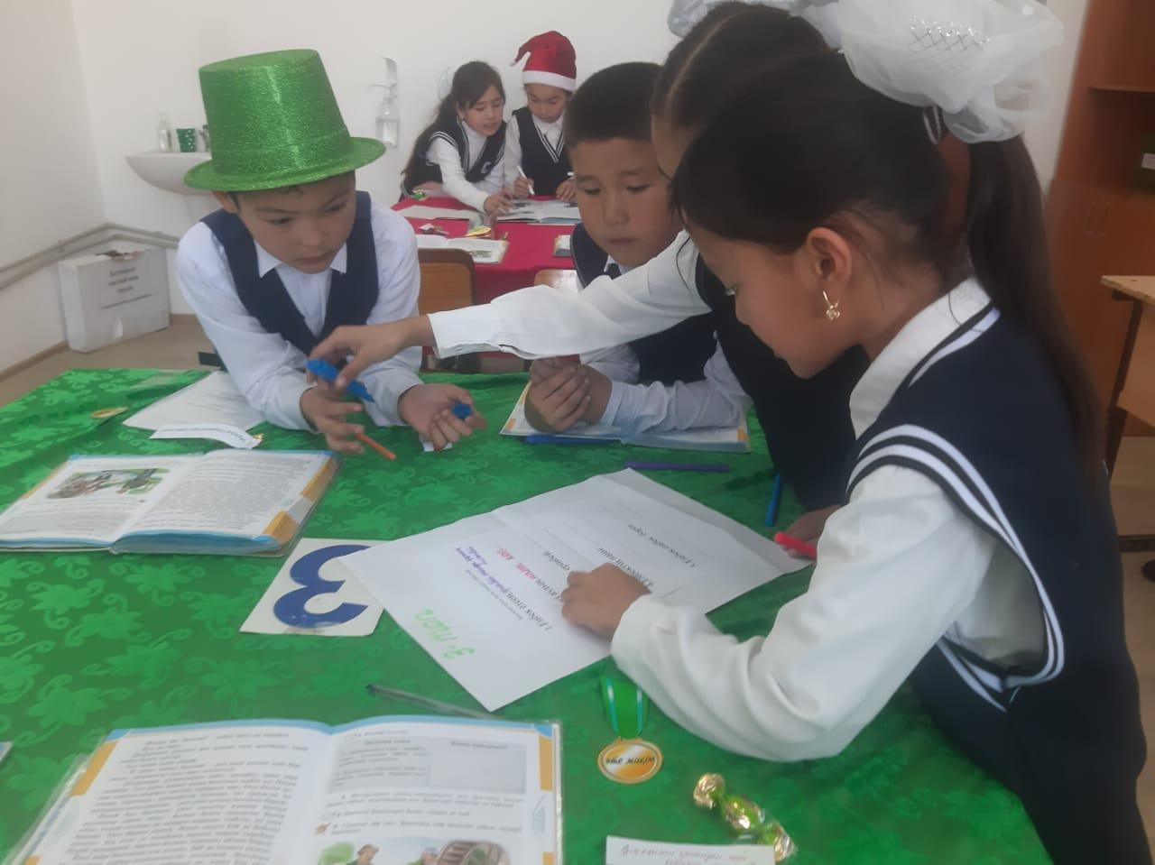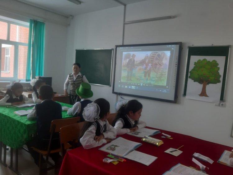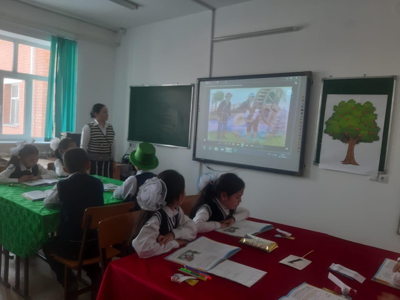 Оқушылар "Алғыр, Тапқыр, Білгір" болып үш топқа бөлінді. Сабақ барысында топтық, жұптық, жеке жұмыстар жүргізілді. Топтық жұмыстың тапсырмалары: Алғыр тобы: "Ертегіні бөліктерге бөліп, оларға ат қойды.", Тапқыр тобы: "Ертегі кейіпкерлеріне сипаттама (бай мен кедей) береді.", Білгір тобы: "Алтын балта қолыңа түссе не істер едің?, Не тілер едің?" (постермен жұмыс) жасады. Сабақта оқушылар белсенділік көрсете білді. Сынып жетекшісі: Г. Төлекова