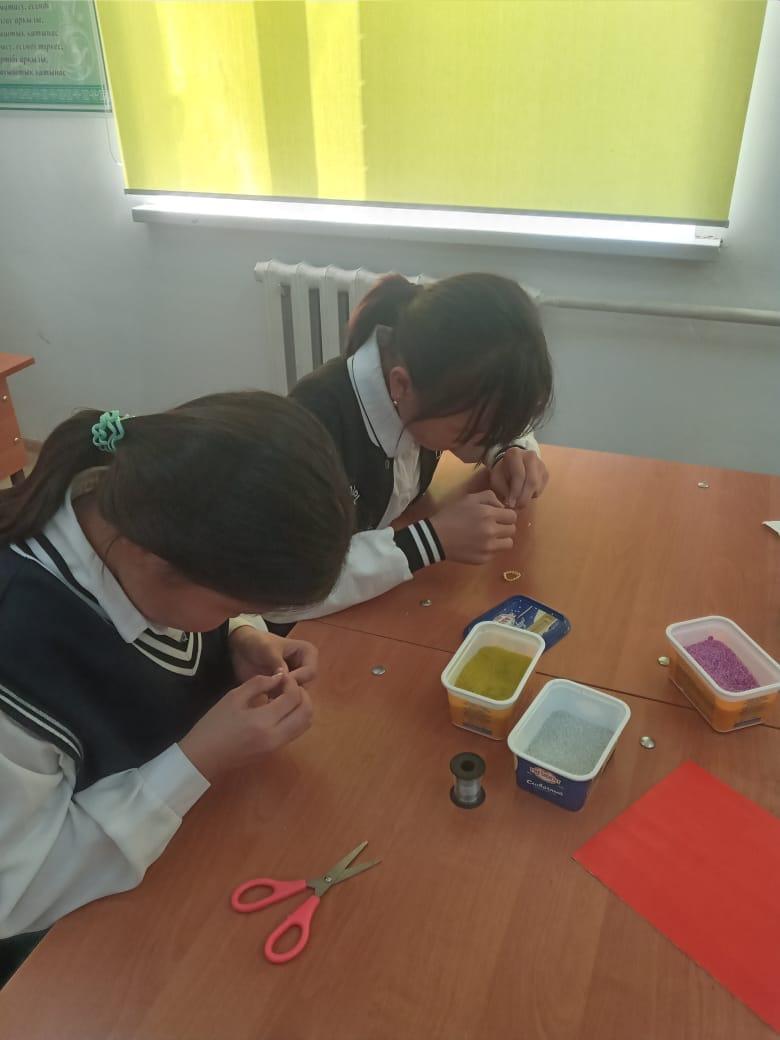 20 қаңтар 5-9 сыныптар арасында шығармашылық тапсырма болды. Яғни, оқушылар еркін тақырыпта салған суреттері мен қолөнер бұйымдарын өткізді. Мақсаты: оқушыларды әсемдікке, жауапкершілікке, төзімділікке баулу.