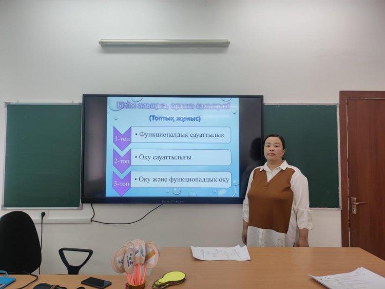 Семинар барысында информатика пәнінің мұғалімі Садыбаева Назкен "Біз өз пәнімізді оқытуда оқу дағдысын дамытуға қаншалықты жауапты қараймыз?" тақырыбында коучинг өткізді. Сонымен қатар жаратылыстану пәнінің мұғалімі Г. Жиембаева 5-сынып оқушыларына "Тірі ағзалардың қасиеттері " тақырыбында ашық сабақ өтті. Сабақтың мақсаты: 5.4.3.1. Тірі ағзалардың ортақ қасиеттерін сипаттау