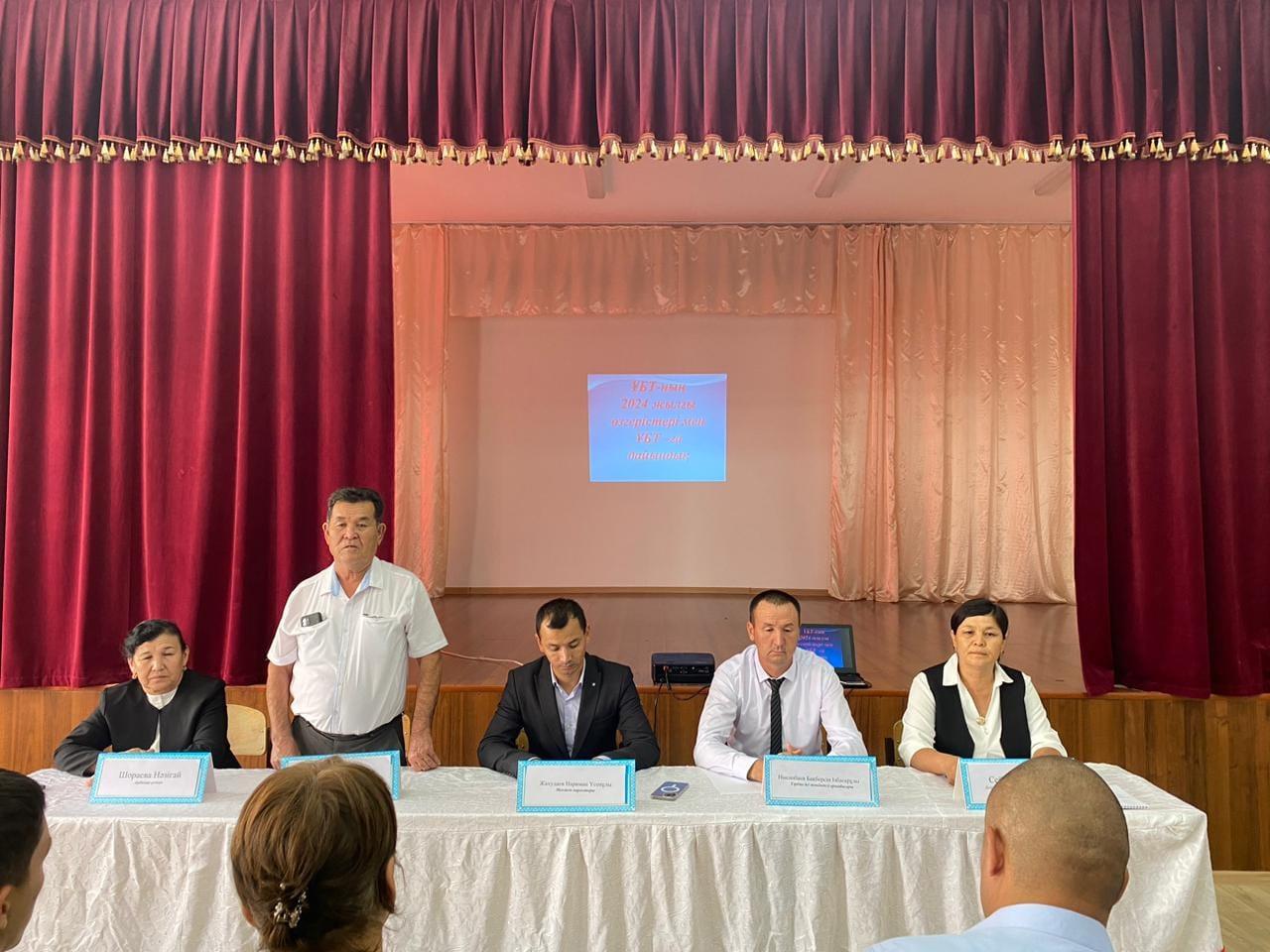 ҰБТ-ның мақсаты - мектепті бітіруші түлектердің негізгі пәндерден бағдарламаны қаншалықты меңгергендігін саралау . Бағдарлама - мемлекеттік құжат. Оны толық меңгеру оқушының , меңгерту - мұғалімнің ең басты міндеті. Мектеп сол арқылы баланы ертеңгі өмірге даярлайды. Ал ата-ана ұстаздармен бірлесе отырып , баланың болашақта белгілі бір мамандықты жаңылыспай таңдауына көмек береді. Алдағы үлкен сынаққа дайындығын күшейту тапсырылды.Ата-аналар жиналысында қосымша тестке дайындық мәселесі талқыланды,ҰБТ- ға. дайындық кестесімен таныстырылды. Оқушы үшін жалпы орта білім беретін мектеп программасын партада меңгерумен қоса ҰБТ-ға дайындықтың технологиясының өзіндік табиғатын терең түсінуі маңызды. Сондықтан бала мамандық таңдауды 8-9 сыныптан бастап түбегейлі нақтылап, пәндік бағыт бойынша тұрақты дайындыққа кіру қажеттігін ескерткен мектеп директоры Нариман Үсенұлы мектеп бітіруші 11сынып оқушыларын спартакиада, басқа да іс шаралардан босатылуды тапсырды.