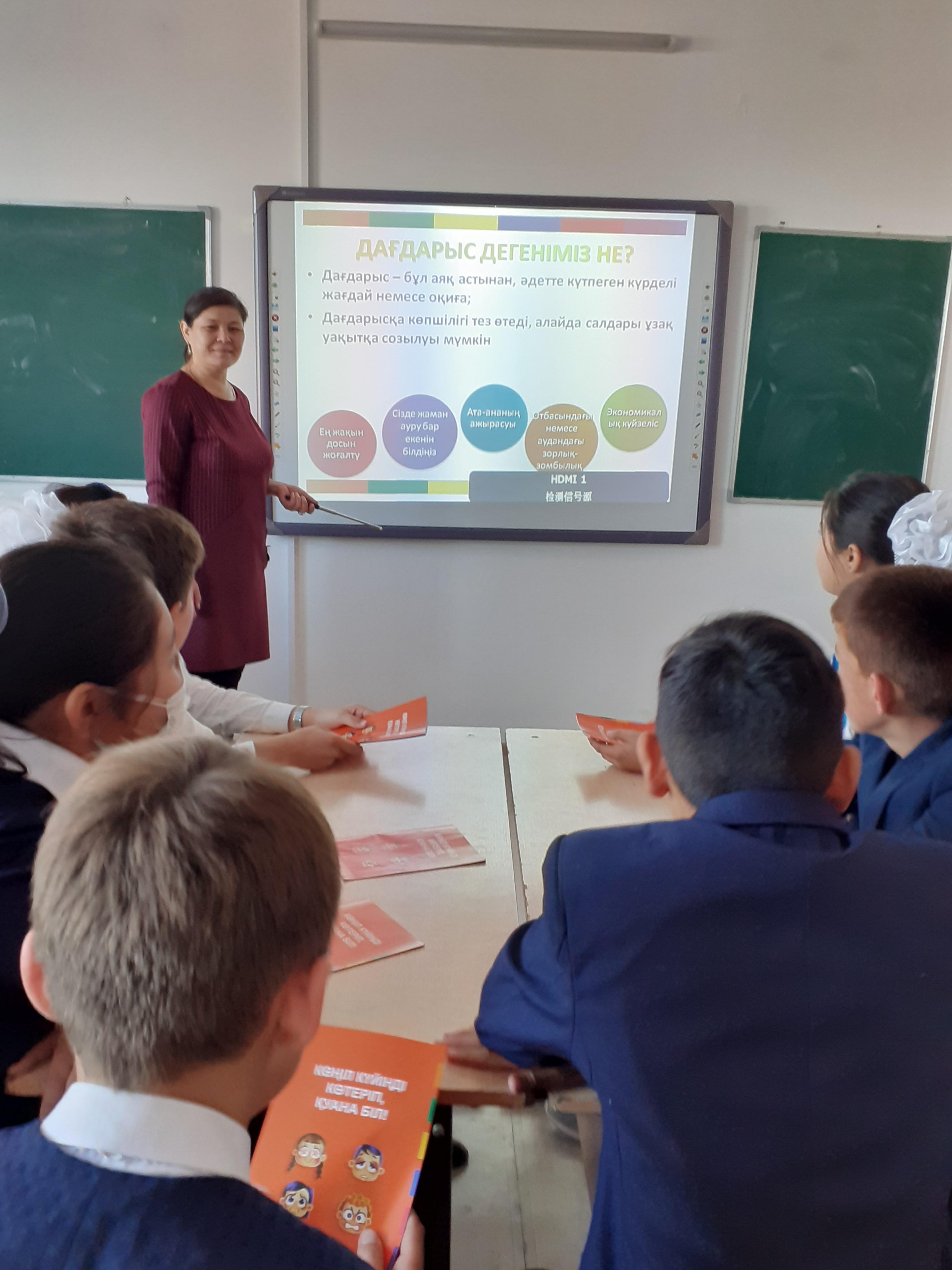 Жасөспірімдердің денсаулығы мен өмірлік дағдыларын қалыптастыру мен суицидтердің алдын алу» бағдарламасы бойынша педагог-психолог Г.Сейтованың ұйымдастыруымен №221 негізгі орта мектебінде «Өз көңіл күйіңді көтеріп, қуана біл!» тақырыбында №2 дәріс 11.11.2019 жылы өтті. Дәріс барысында оқушылар «Стресс және дағдарыс», «Депрессия және суицид туралы ойлар» , «Досың қиындыққа тап болса, қалай көмектесуге болады?», «Кімнен кеңес және көмек сұрауға болады» тақырыбында ақпараттандырылды. Аталмыш дәріске 8-сыныптың 8 оқушысы қатыстырылды. Оқушылар дәріс барысында көптеген ойларымен бөлісті.