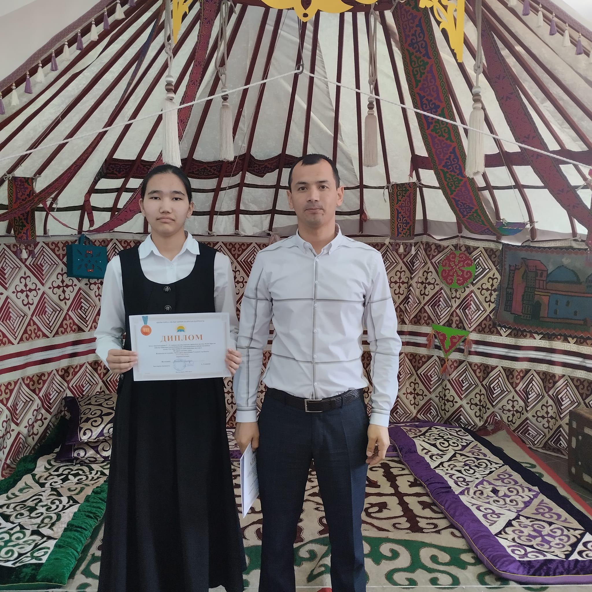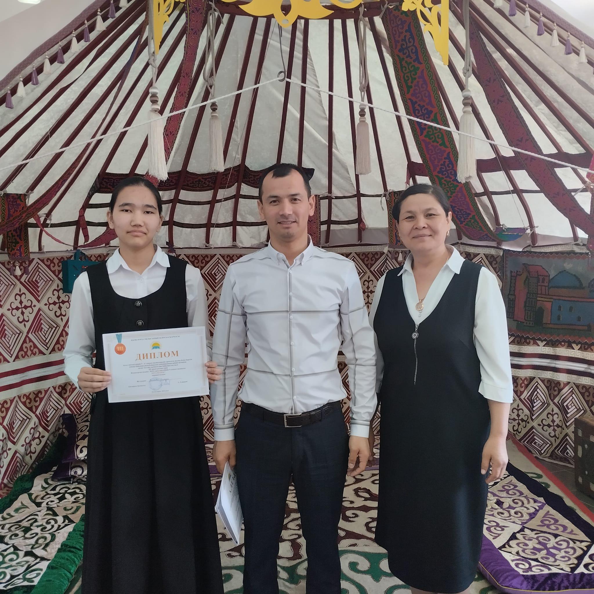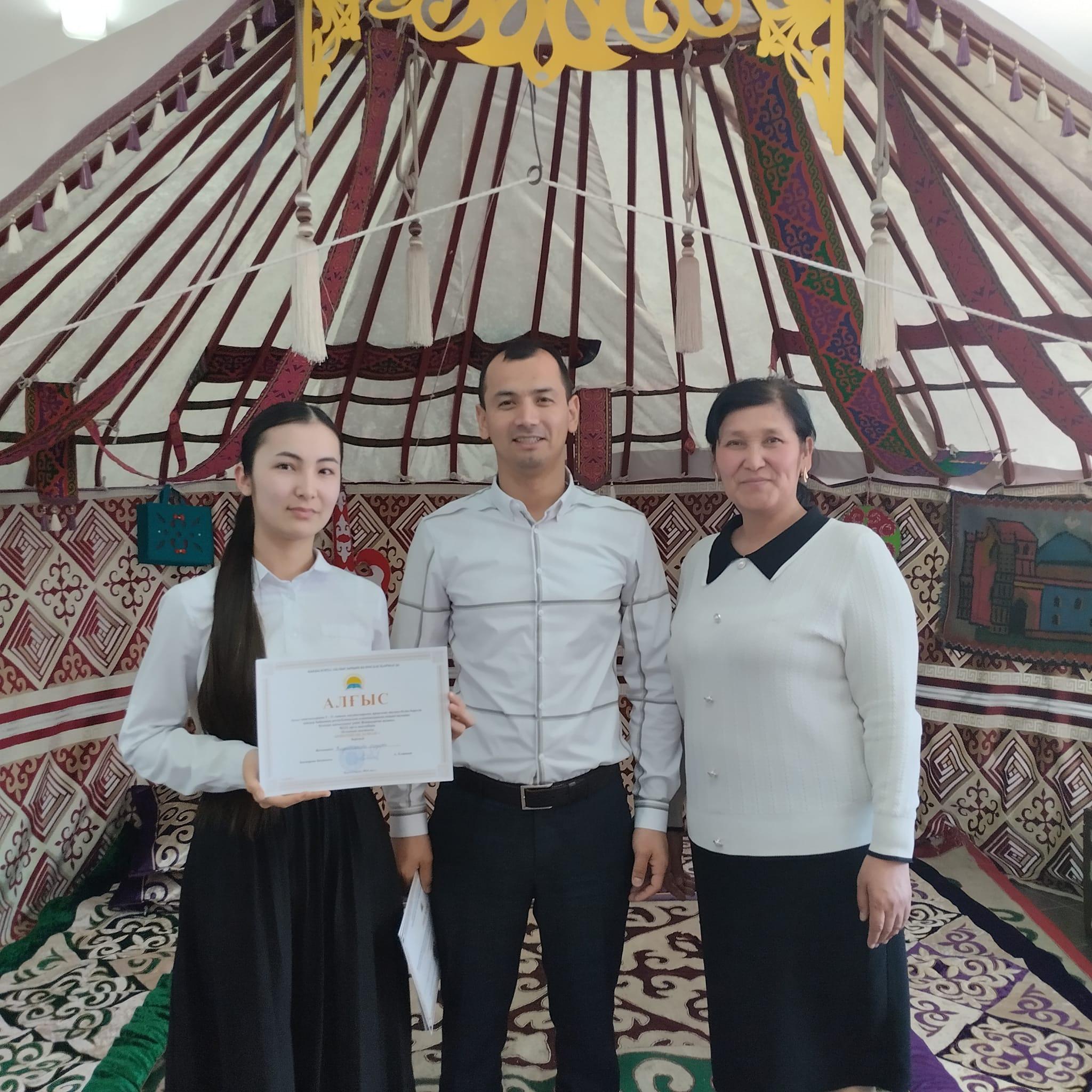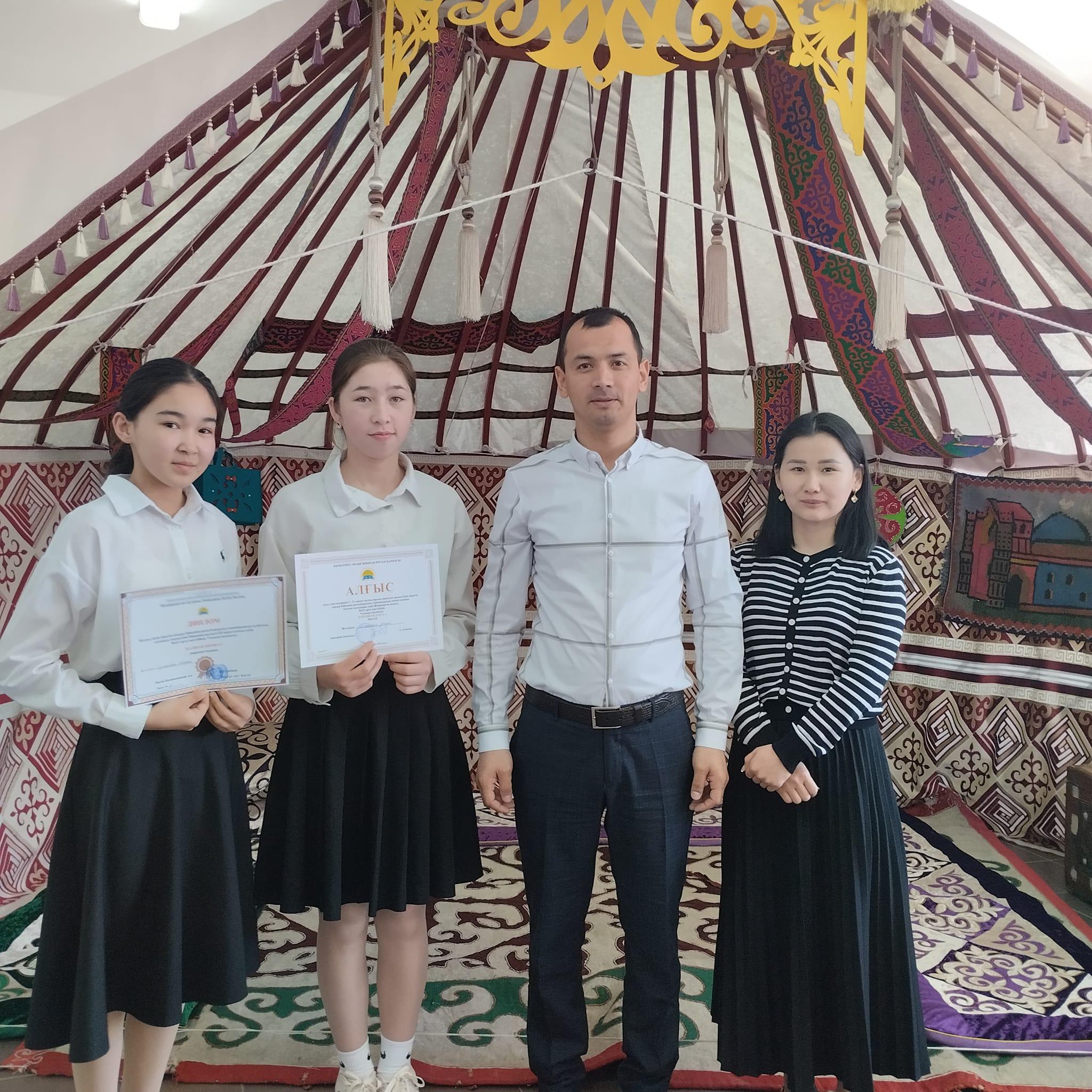 Ауыл мектептерінің 9-10 сынып оқушыларына арналған жалпы білім беретін пәндер бойынша республикалық олимпиаданың екінші кезеңіне белсене қатысқаны үшін мектебіміздің 9-сынып оқушысы Майлыбай Дана марапатталды.