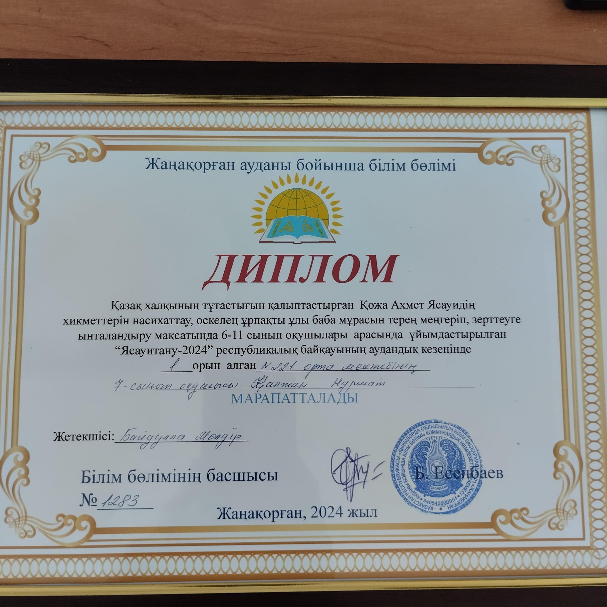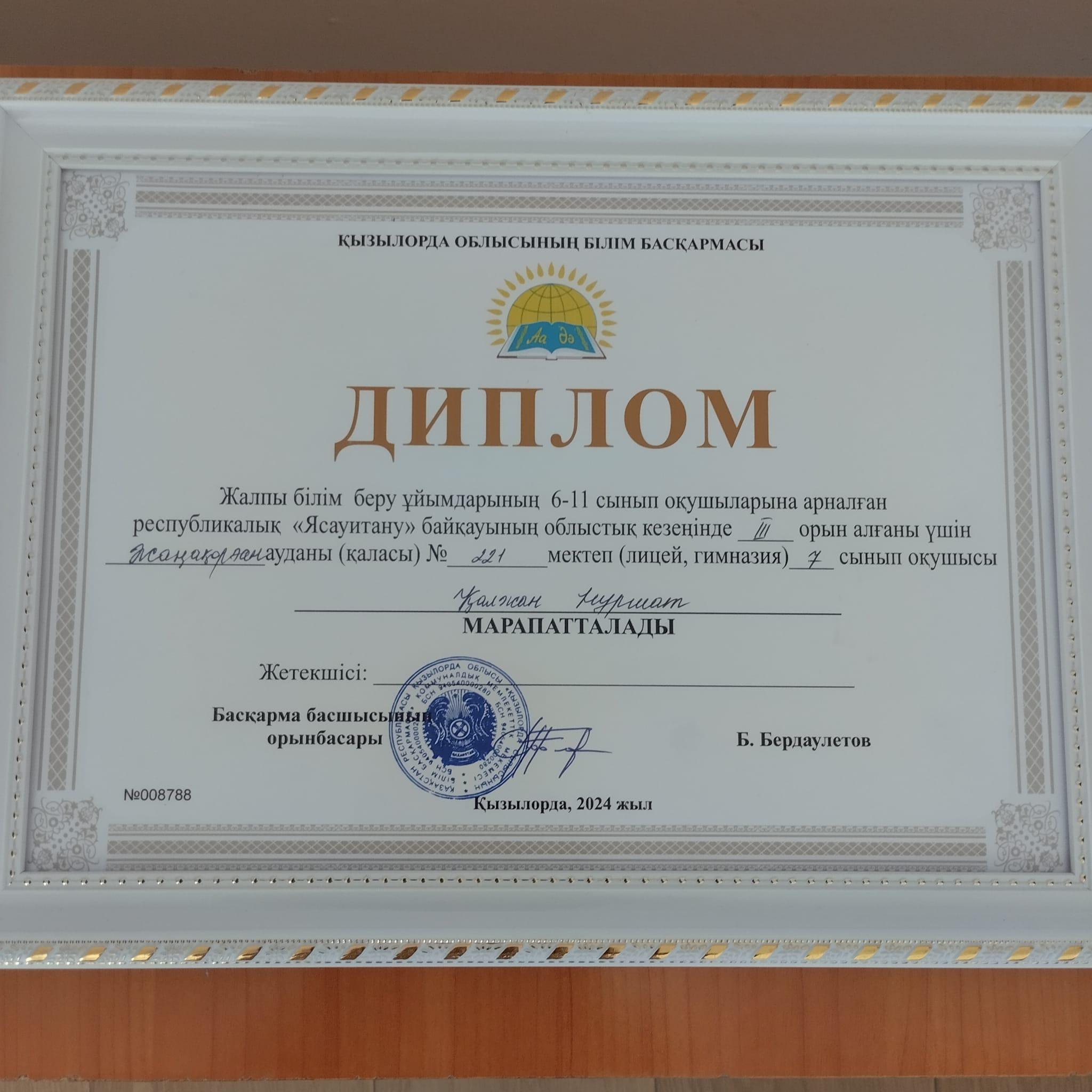 І дәрежелі диплом иегері атанған болатын.