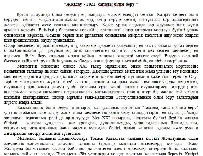 "Жолдау - 2021: сапалы білім беру" байқау