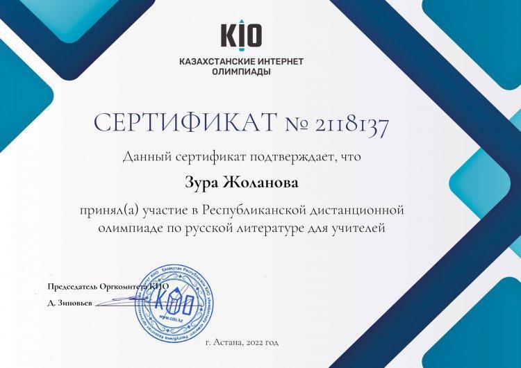 Қазақстан интернет олимпиадасының жеңімпазы - З.Жоланова