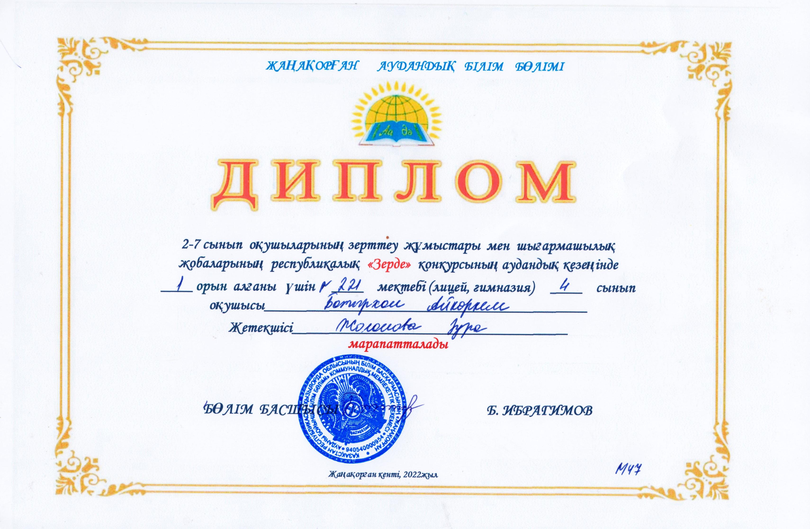 №221 жалпы орта білім беретін мектебінен оқушылар арасында ұйымдастырылған "Зерде" конкурсынан 4 - сынып оқушысы Батырхан Айкөркем аудандық және облыстық кезеңнен І орынды иеленсе, 9 - сынып оқушысы Сайымбай Дания аудандық кезеңнен ІІ - орыны иеленді.