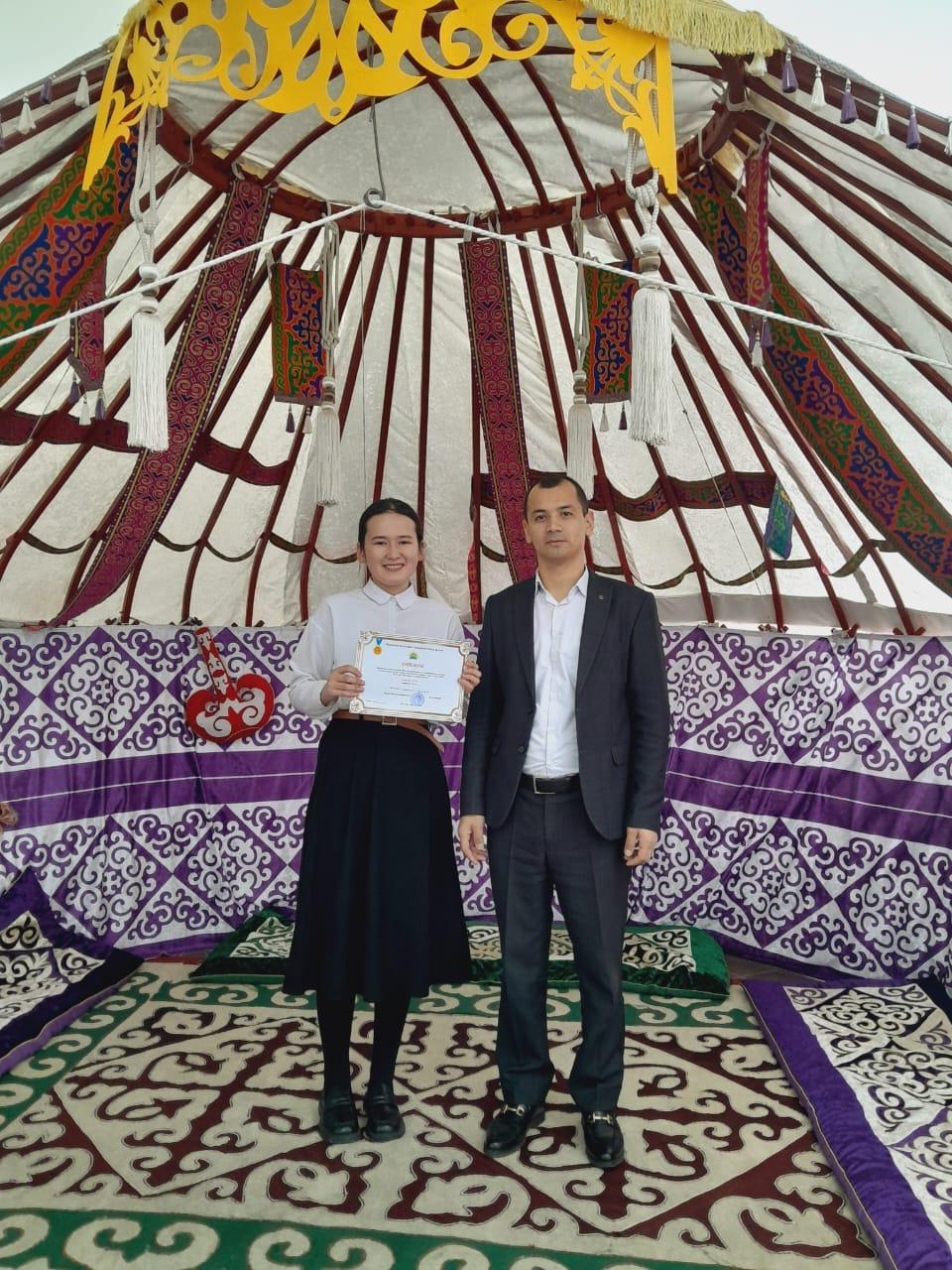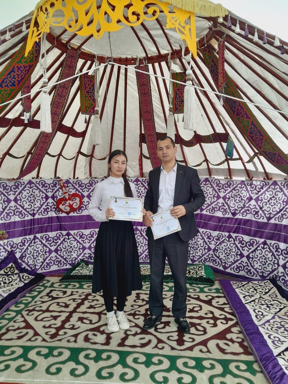 Орыс тілі пәні бойынша ІІІ орынға ие болған 9 сынып оқушысы Саламатқызы Кәусар марапатталды.