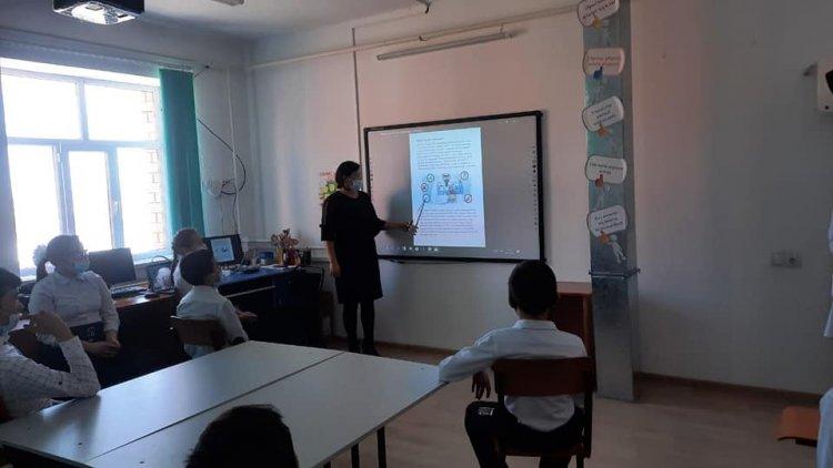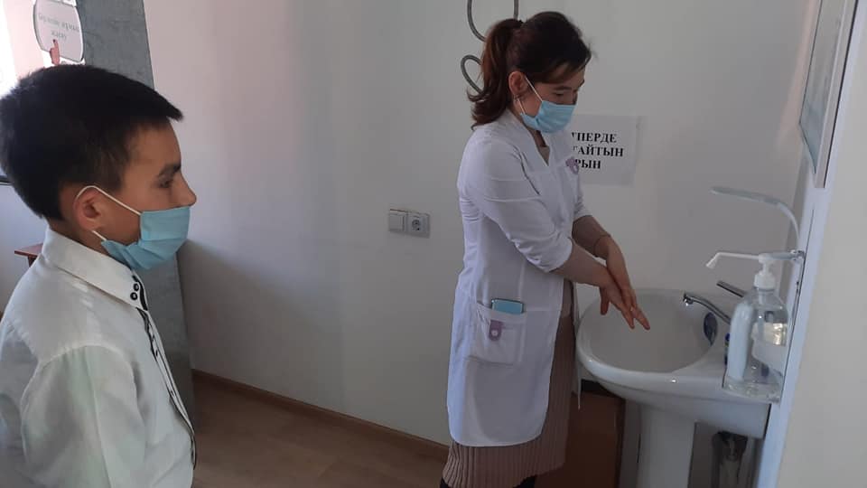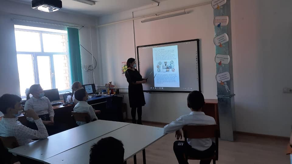 Қызылорда облысы Жаңақорған ауданы Аққұм ауылы #221 негізгі орта мектебінің 8-сынып оқушыларына жетекшісі А.Айтөреева мен мектептің медбикесі К.Божбанбай "Коронавирустан сақтанудың жолдары" тақырыбында түсіндірме жұмыстарын жүргізді.