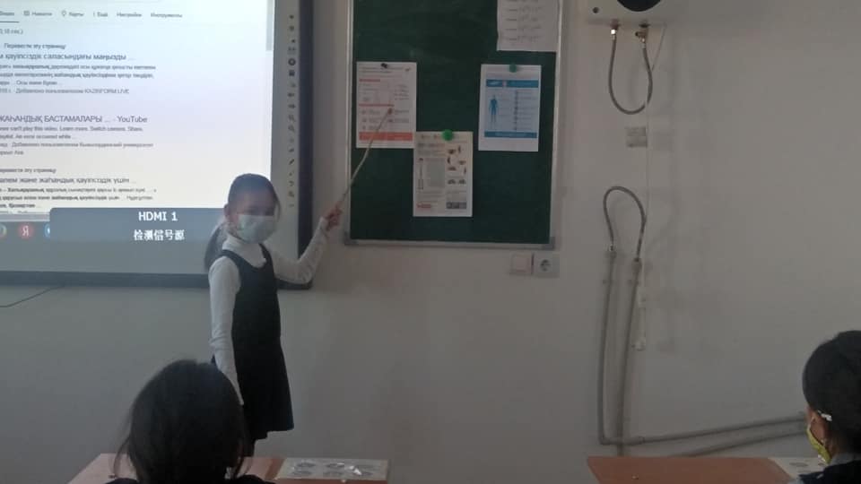 Қызылорда облысы Жаңақорған ауданы 221негізгі орта мектебінің 3-сыныптың сынып жетекшісі Ж. Каимова мен мектеп мейірбикесі К. Божбанбай «Коронавирустан сақтану шаралары» тақырыбында түсіндіру жұмыстарын жүргізді.