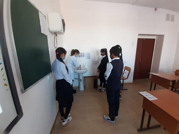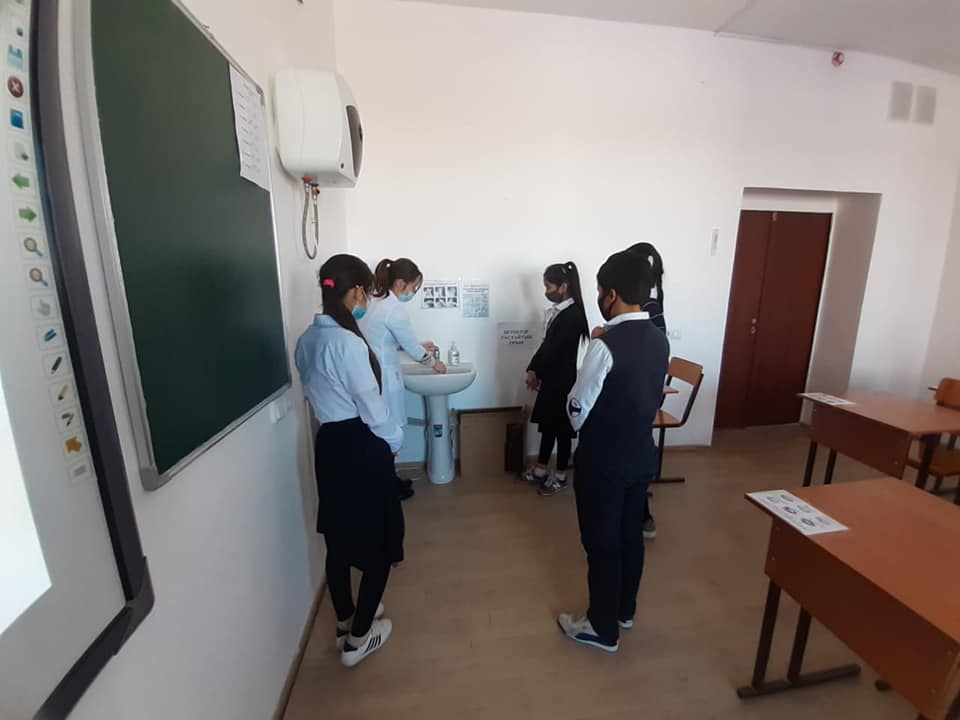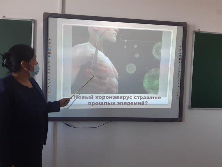 01 февраль 2021 0 1 2 3 4 5 "Коронавирустан қорғану шаралары" түсіндірме жұмыстары №221 негізгі орта мектебінің 7-сынып жетекшісі М.Бердіқожаева мен мектеп медбикесі К.Божбанбай сынып оқушыларына «Коронавирустан сақтану шаралары» тақырыбында түсіндіру жұмыстарын жүргізді.