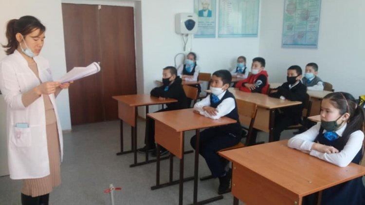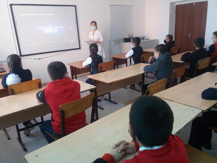Қызылорда облысы Жаңақорған ауданы Аққұм ауылы #221 негізгі орта мектебінде сынып жетекші А. Қожатаев 5 - сынып оқушыларына " Короновирус: берілу белгілері және емдеу " тақырыбында сынып сағатын өтті. Сынып сағатында мектеп медбикесі К. Божбанбай оқушыларға сақтық ережесін қалай сақтау және антисептикті қалай пайдалану керектігін айтты.