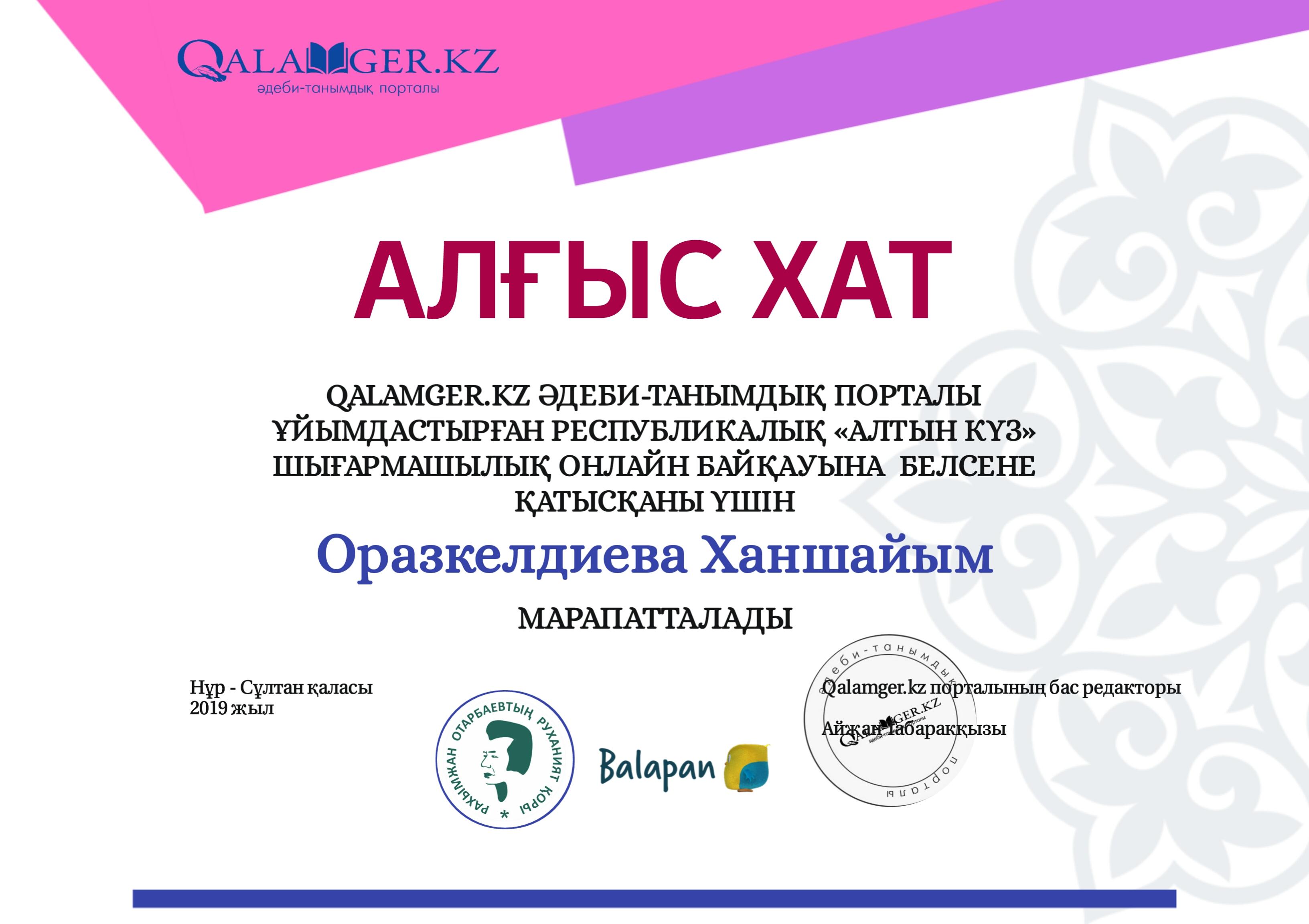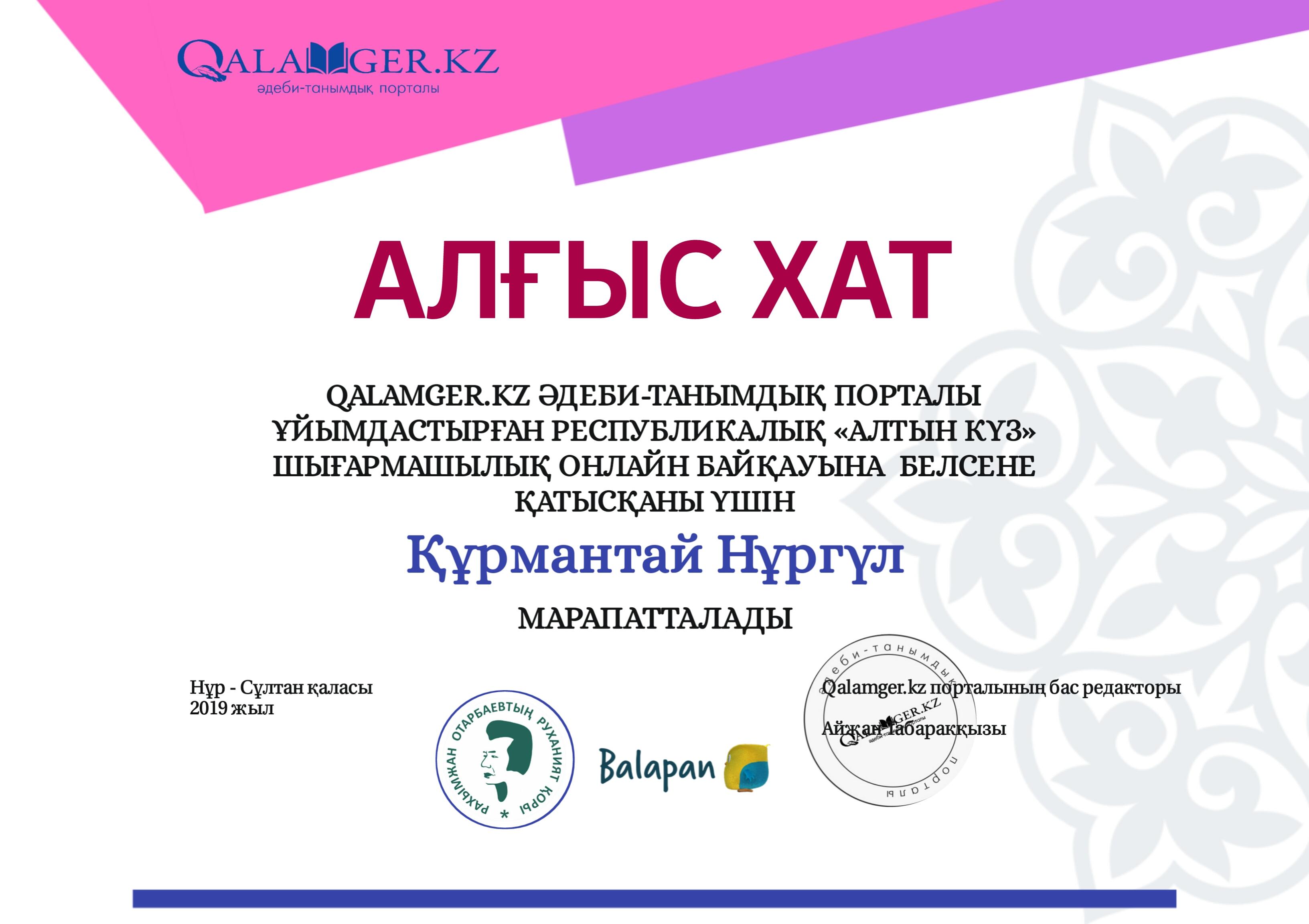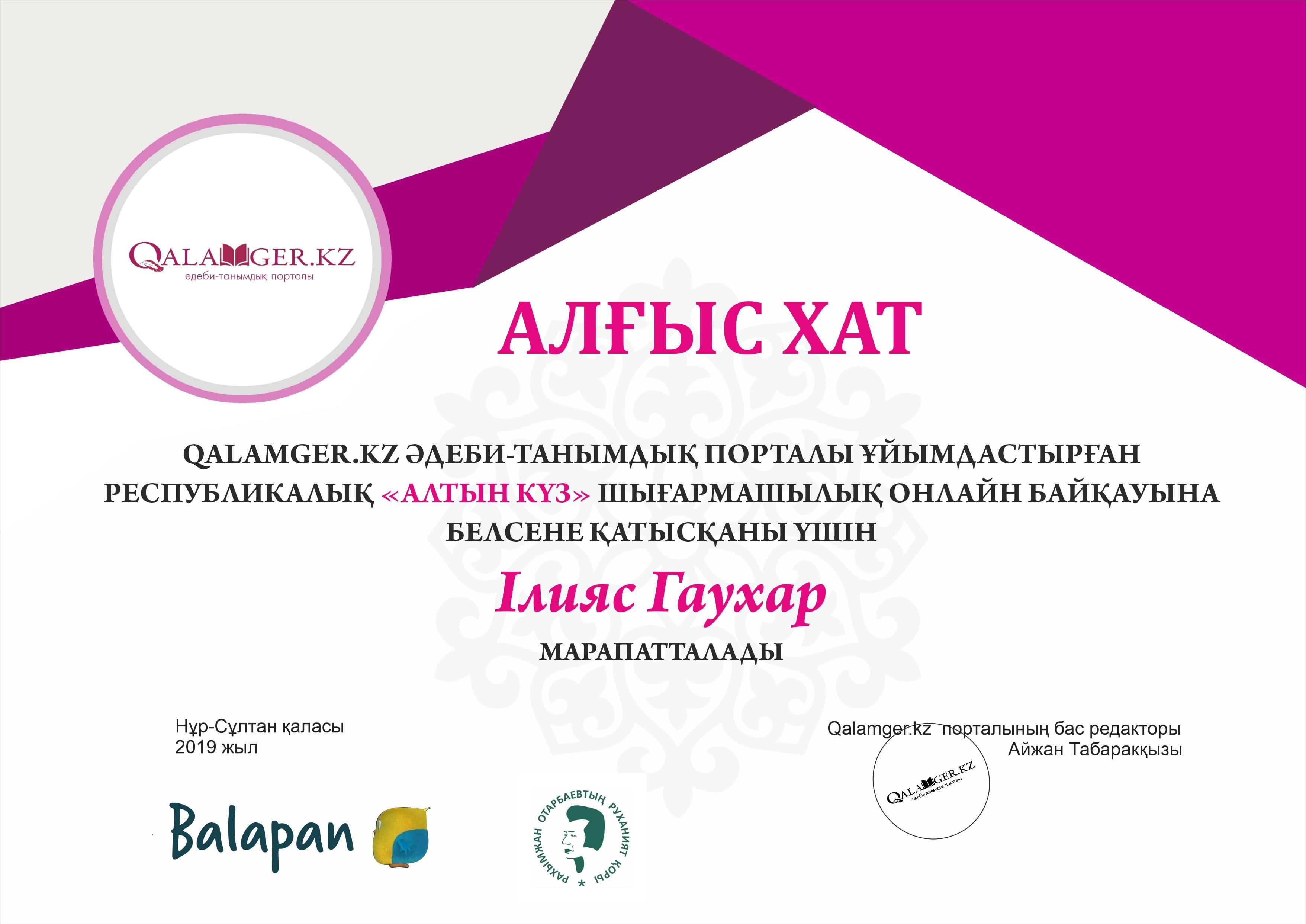 №221 негізгі орта мектебінің тәлімгері Ә. Жанасбаеваның жетекшілігімен Qalamger.kz әдеби - танымдық порталының оқушылардың кітап оқуға деген қызығушылығын арттыру, жас қаламгердің шығармашылық қабілетін шыңдау және туған тілге деген сүйіспеншілігін ояту мақсатында ұйымдастырған онлайн байқауға мектептен 5 оқушы қатысты. Байқауда оқушылар «Алтын күз» тақырыбына шығарма жазды. Қатысқан 5 оқушы да алғыс хатпен марапатталды.