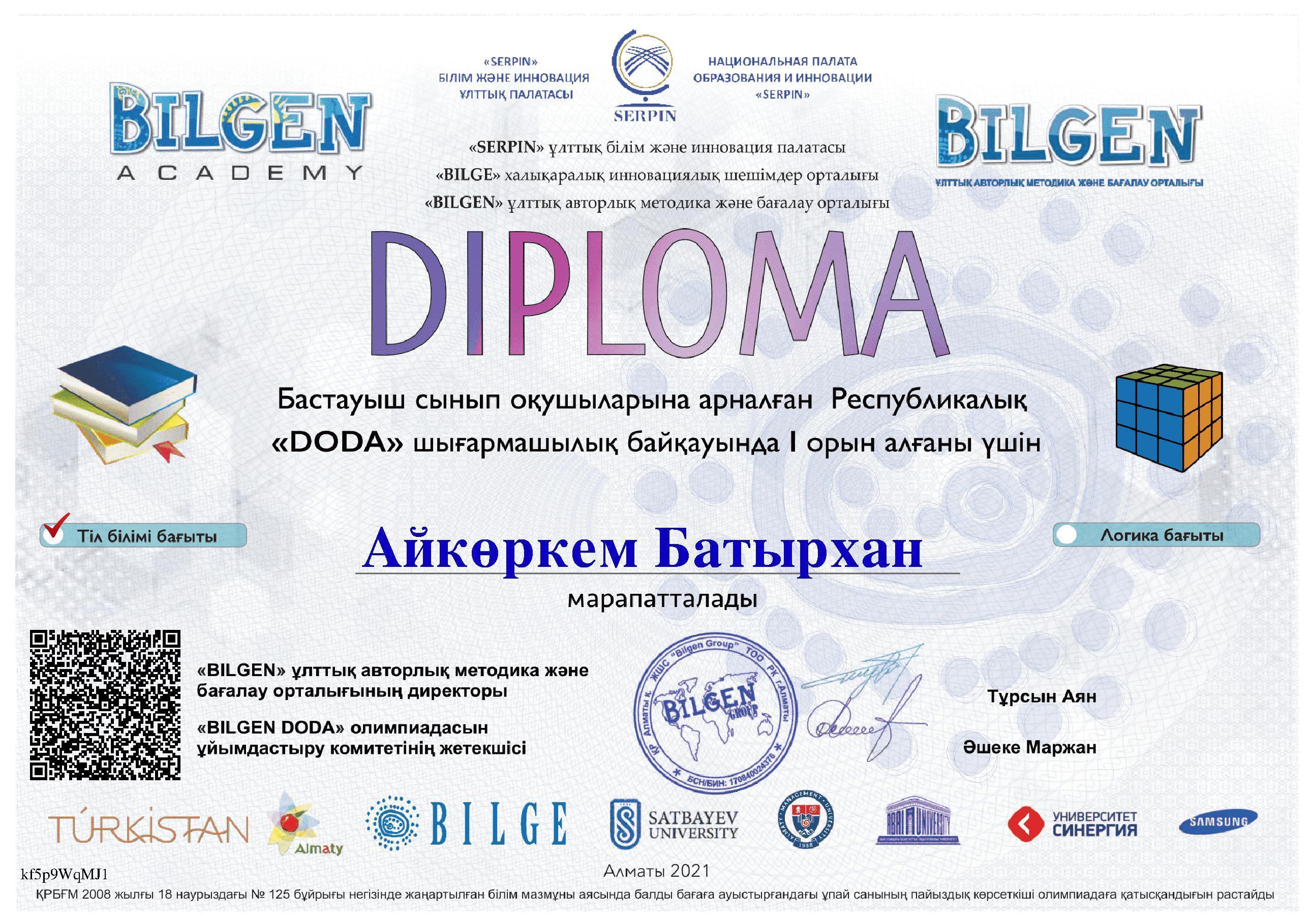 09 март 2021 0 1 2 3 4 5 "DODA" шығармашылық байқауының жеңімпазы Бастауыш сынып оқушыларына арналған Республикалық "DODA" шығармашылық байқауына 2-сынып оқушысы Батырхан Айкөркем қатысып, өзінің білімін сарапқа салып, жеңіс тұғырынан көрінді. Жетекшісі: орыс тілі мен әдебиеті пәнінің мұғалімі Жоланова Зура.