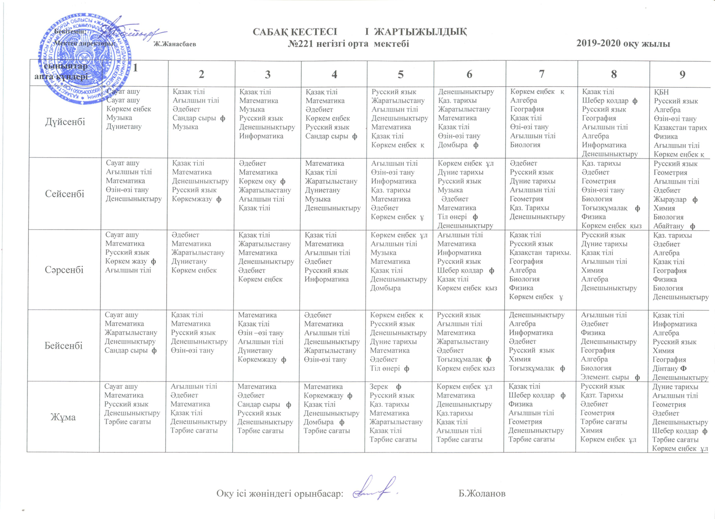 Сабақ кестесі » №221 орта мектебі