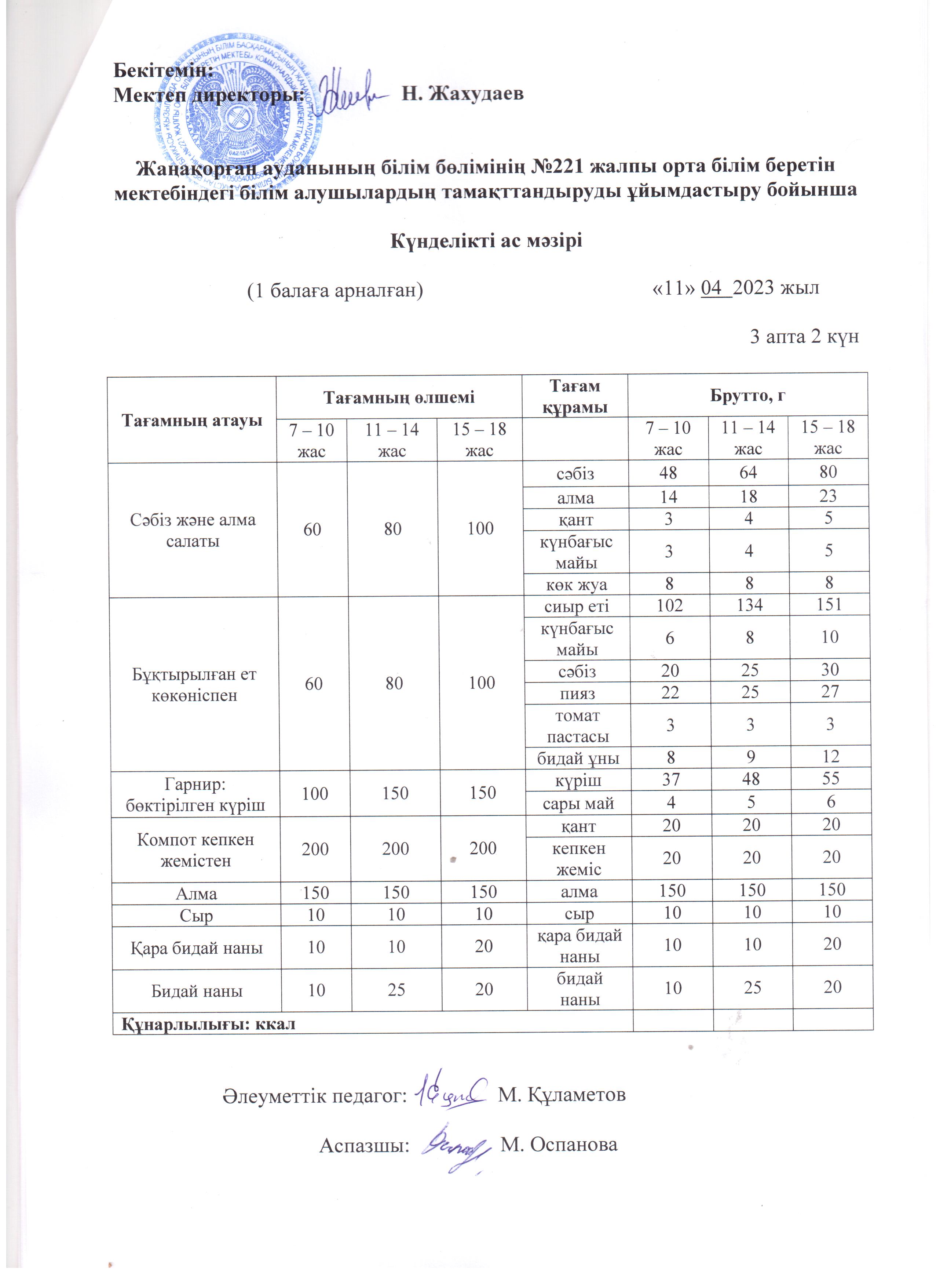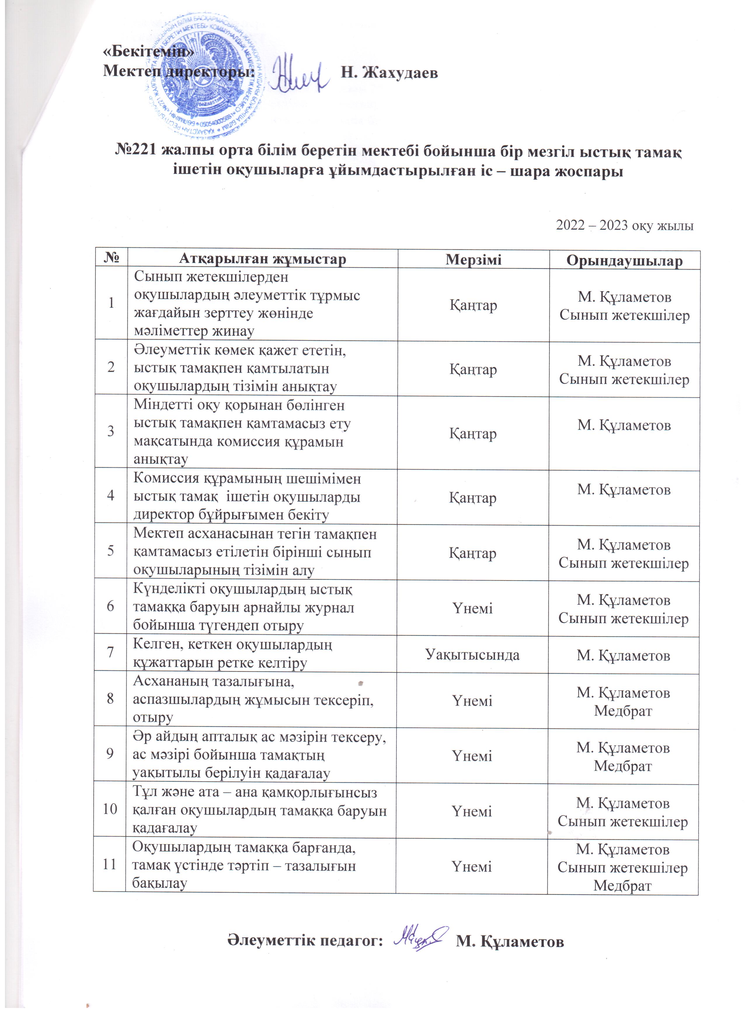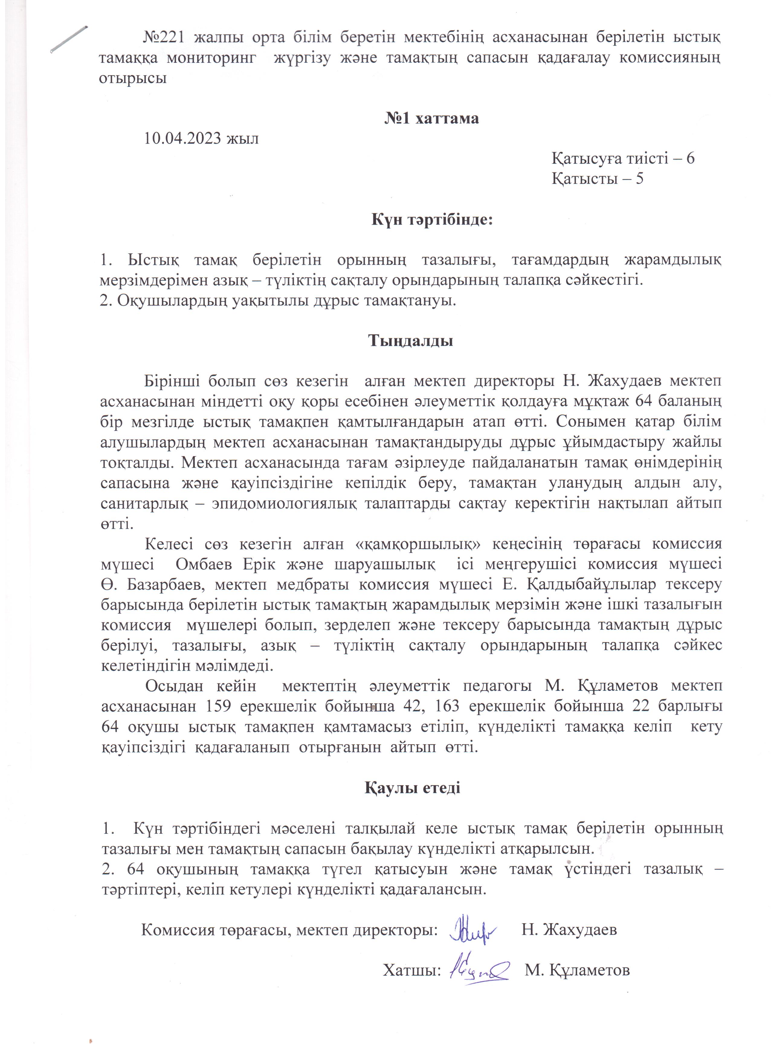 Мектеп асханасындағы тамақтың сапасына жасалынған мониторинг қорытындысы » №221 орта мектебі