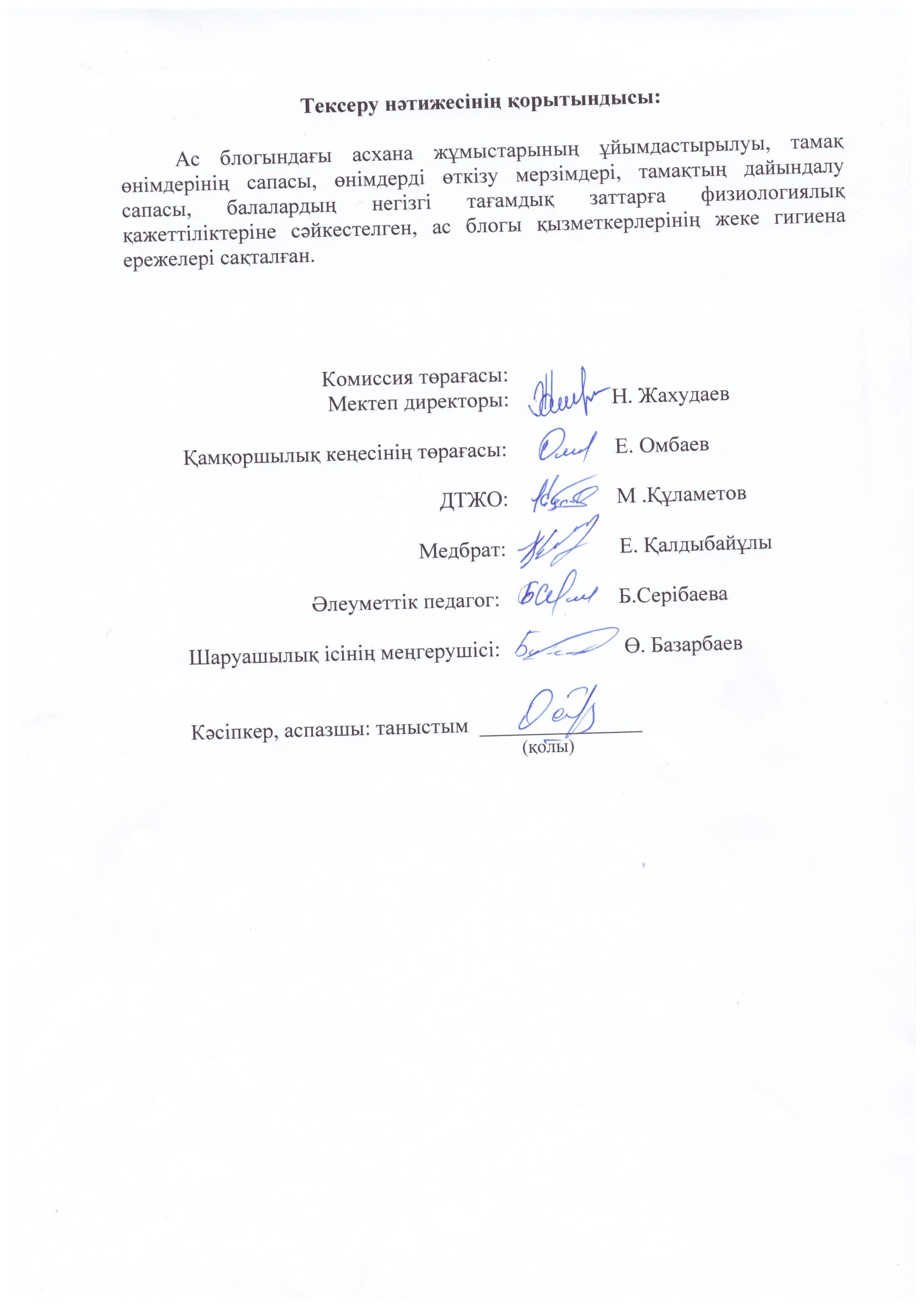 Мектеп асханасындағы тамақтың сапасына жасалынған мониторинг қорытындысы