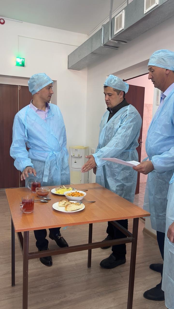 Оның ішінде мектеп асханасының ас қоймасын, тамақ пісіретін пешті,ыдыс жуатын орындарын, ыдыстарының сынықтарының жоқтығын, тоңазытқыштың температуралық режимін сонымен қатар тағамдарының берілу мерзімдерін тексерді.