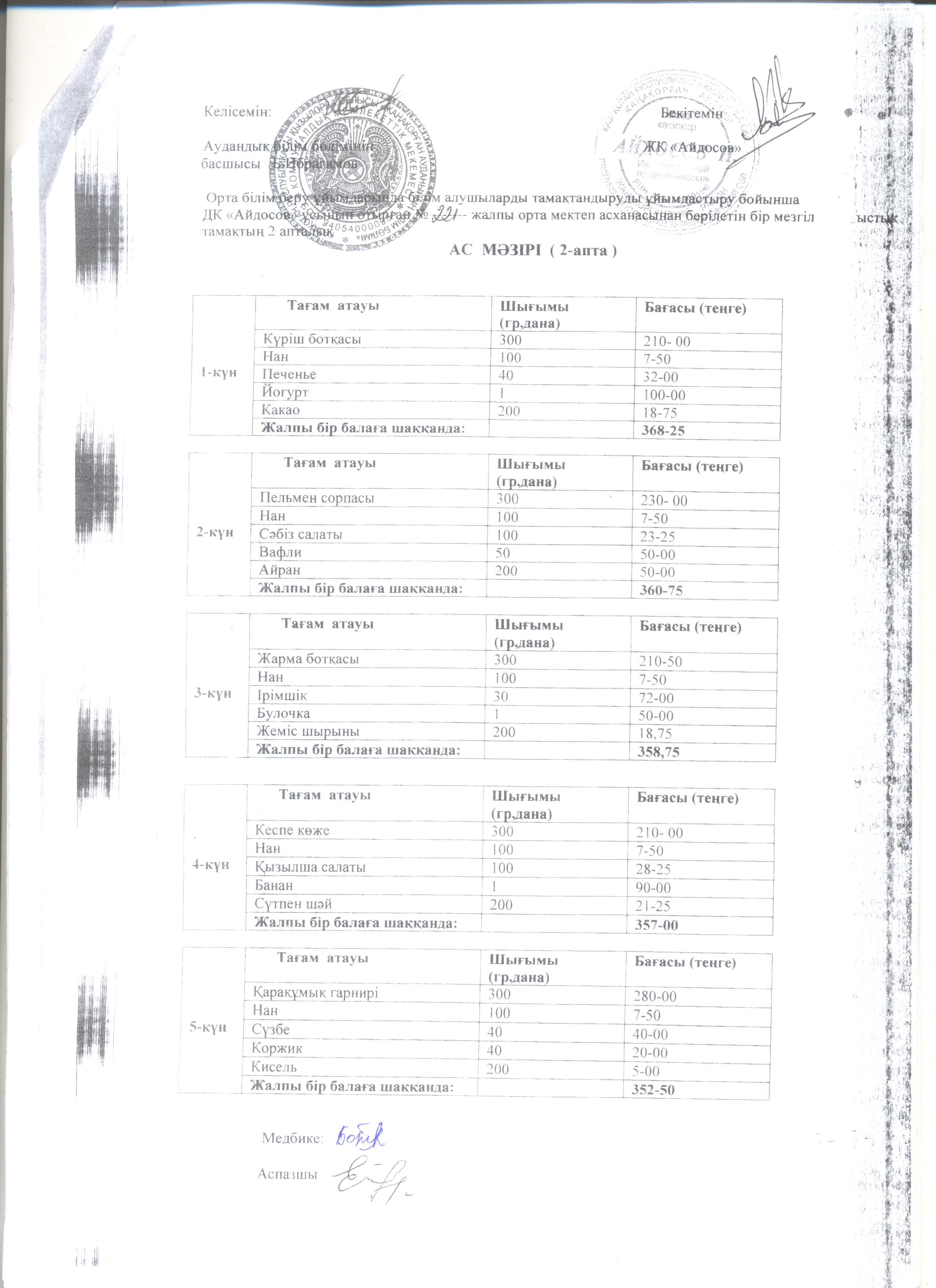 02 сентябрь 2020 0 1 2 3 4 5 Дұрыс тамақтану мәселелері бойынша Дұрыс тамақтану мәселелері бойынша білім алушылардың ата-аналарымен (заңды өкілдерімен) консультациялық және түсіндіру жұмыстарының атқарылуын растайтын құжаттар.