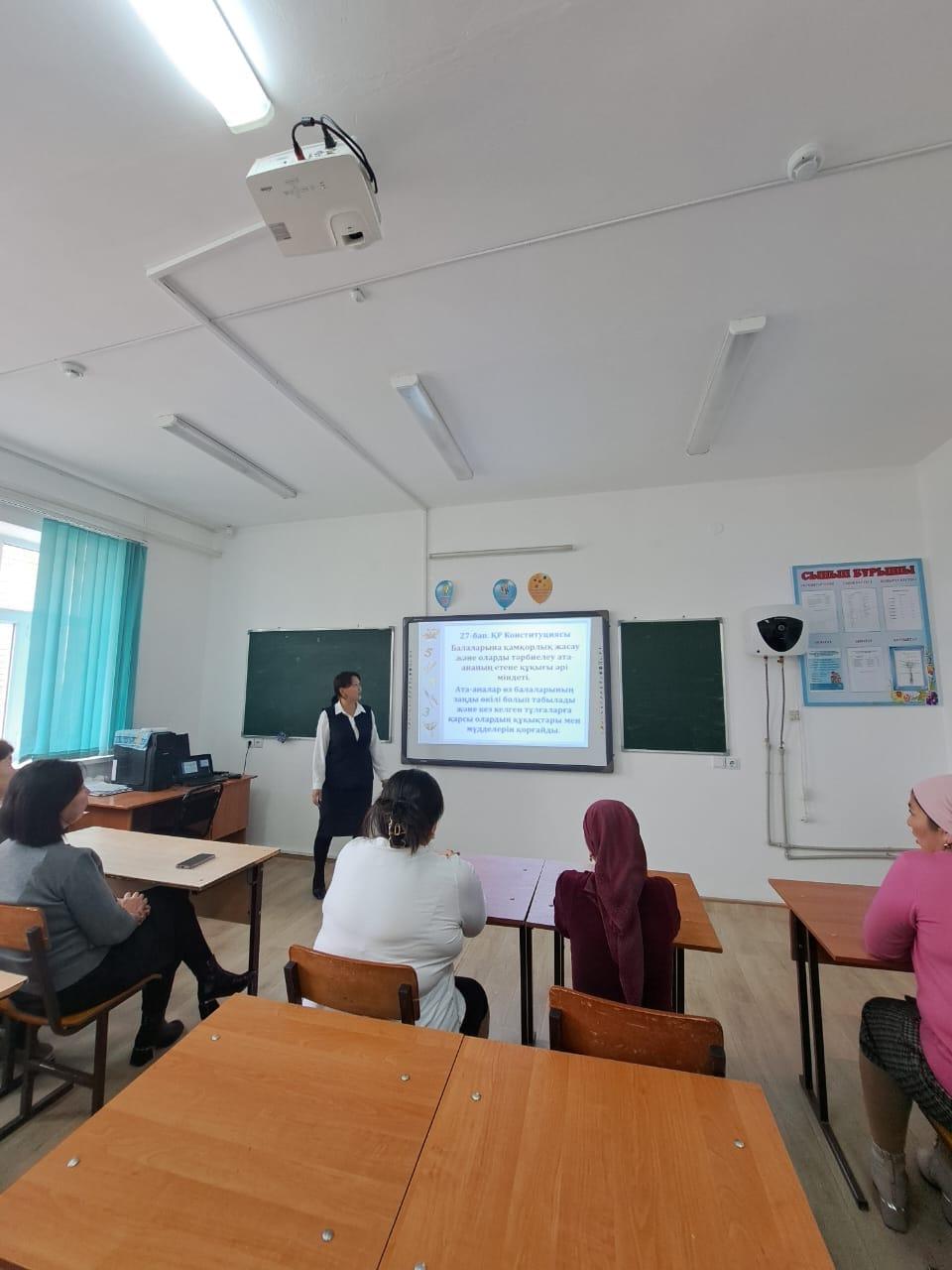 Мақсаты: Ата-аналардың құқықтық білімдерін тереңдету, заң алдында жауапкершілікті арттыру. Өз құқығы жөнінде жан-жақты мағлұмат беру.